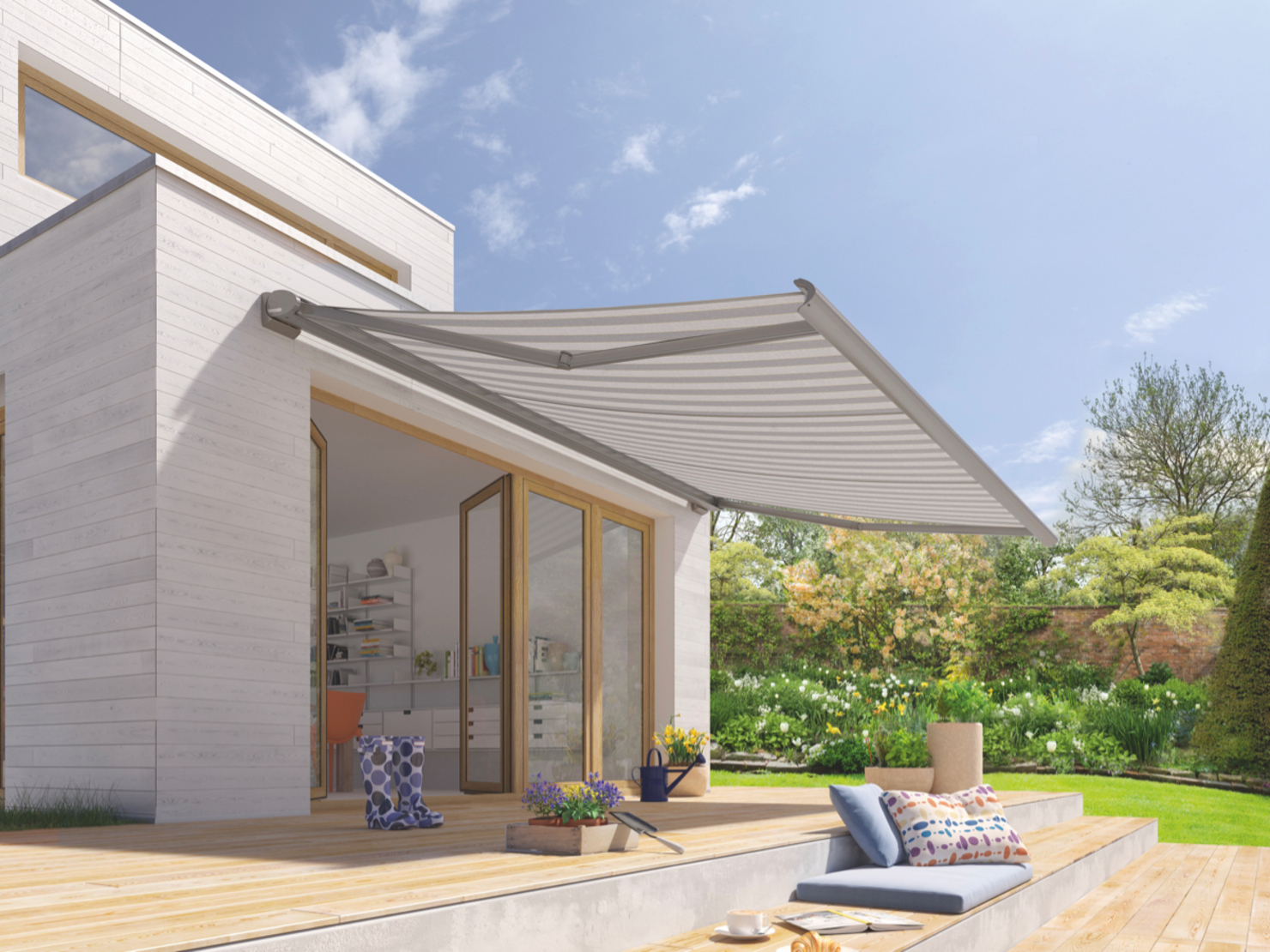 Mit ihrem schlanken, puristischen Design bietet Cassita II die perfekte Entsprechung zu modernen Wohntrends. Ungeachtet ihrer extrem flachen Formgebung beherbergt die Kassette eine ganze Fülle an technischen Innovationen. Die optisch reduzierte Zweipunktaufhängung unterstützt den zeitgemäßen Designansatz. Mit ihren Abmessungen von bis zu 5,5 x 3m deckt Cassita II übliche Terrassengrößen perfekt ab. Darüber hinaus zeichnet sich diese Kassettenmarkise durch ihre hohe Windfestigkeit bis Windstärke 5 nach Beaufort aus.
