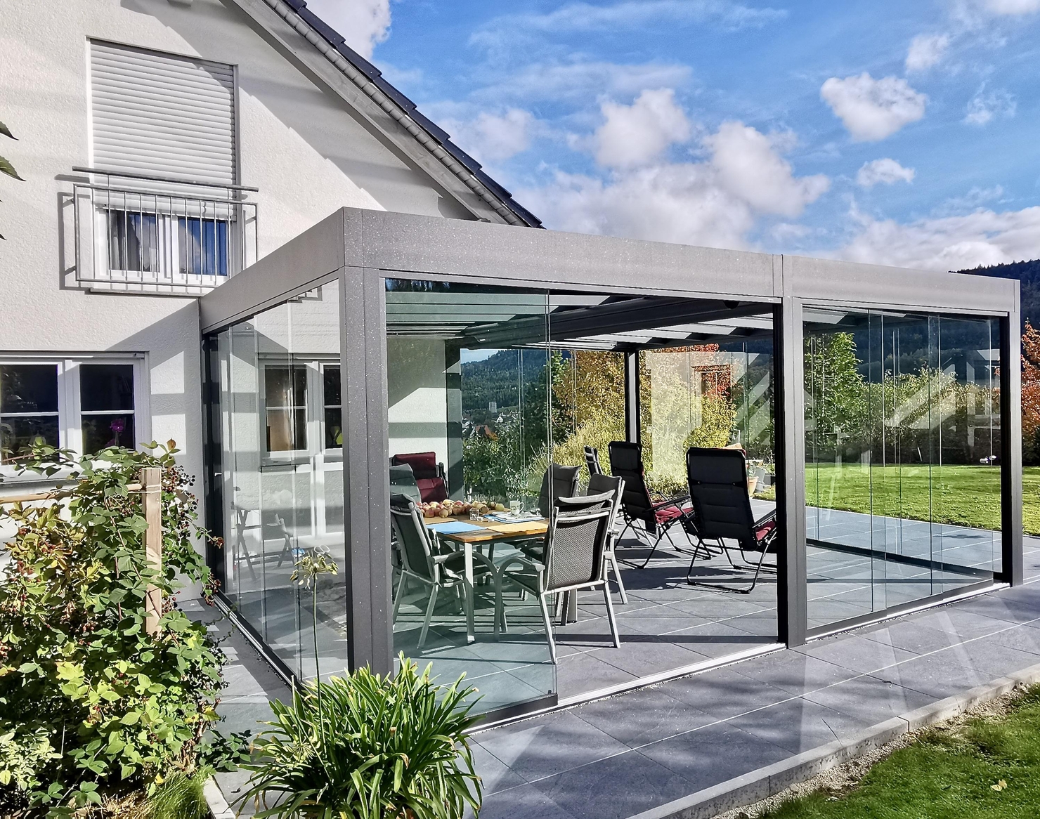 Das PURE wurde auf das Wesentliche reduziert und verwandelt Ihre Terrasse mit seinen filigranen Profilen und der einfachen Installation in einen Wohlfühlort.