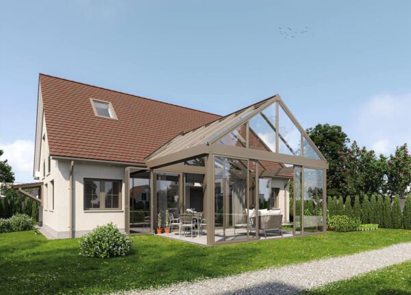 Das Terrazza Originale überzeugt durch seine elegante Konstruktion mit klassischer Dachform. Mit Glaselementen lässt sich das Terrassendach zur Glasoase ausbauen.